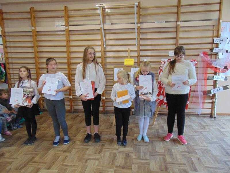 odzyskania niepodległości. W konkursie brali udział nasi uczniowie, którzy zdobyli zaszczytne miejsca : 1 miejsce zajęła