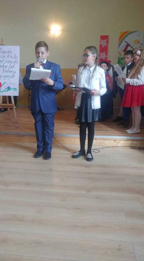 Wojciecha Kowalczyka. Uczniowie śpiewali pieśni przy akompaniamencie pani Anny Sieroty-Muszkiety.