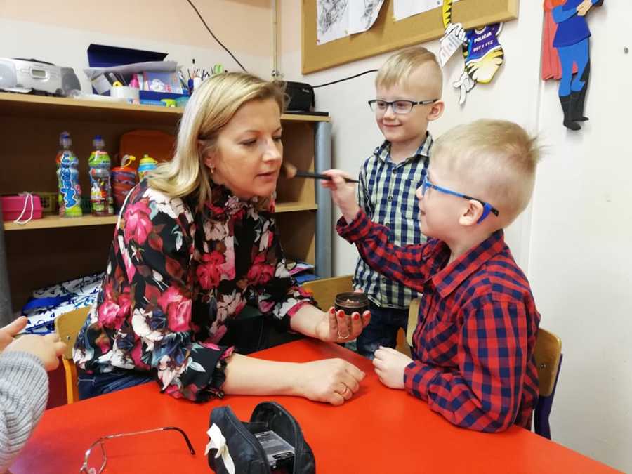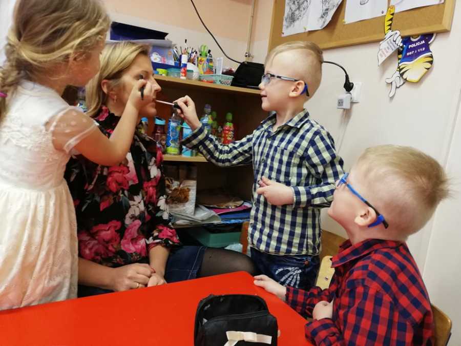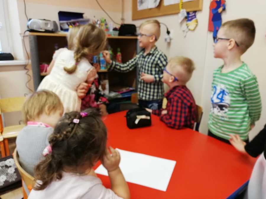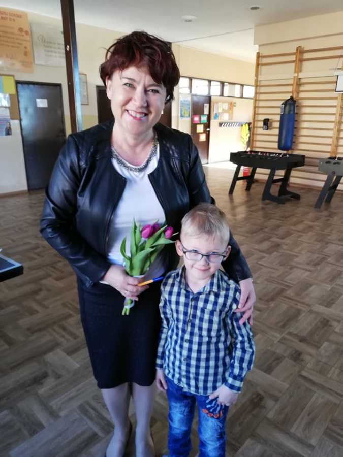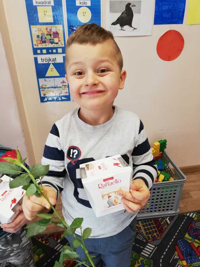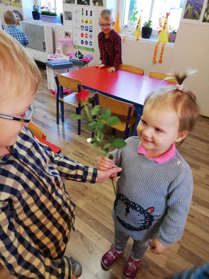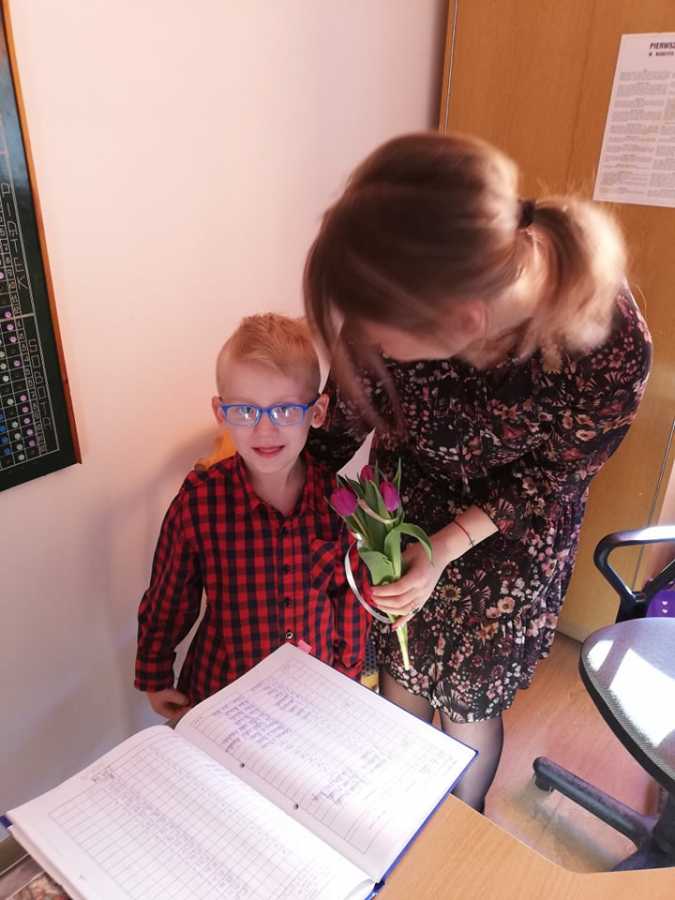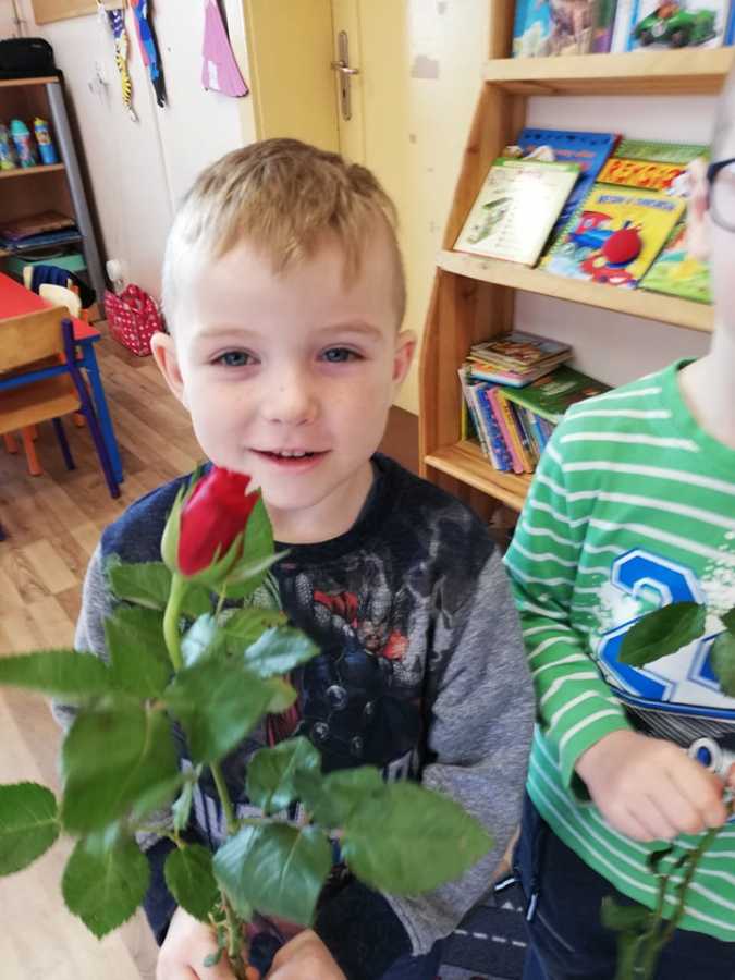 życzenia dziewczynkom i paniom. Nie obyło się bez kwiatka, słodkiego upominku. Z dziewczęcych buź uśmiech nie schodził