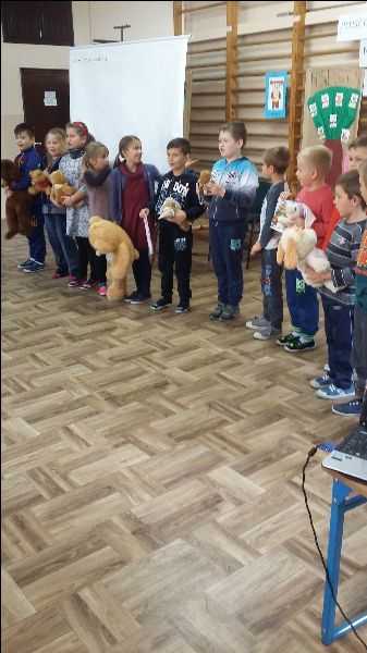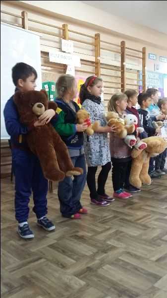 Dnia 20.10.2016 roku odbył się Dzień Pluszowego Misia pod hasłem „Czytamy dzieciom – misie w bajkach i baśniach”. Udział brały przedszkolaki i uczniowie klasy I, II i III. Zaproszono rodziców i panią Lucynę Golembka, która omówiła korzyści z systematycznego czytania dzieciom oraz przeczytała fragmenty bajki „Kubuś Puchatek”. Wcześniej grupy przygotowały plakaty z wybranymi, popularnymi misiami, następnie przedstawiły swoich bohaterów według własnego pomysłu. Dzieci przyniosły ulubione książki o misiach z których zorganizowano „Mini – bibliotekę. Zakończono obchody blokiem muzycznym – „Piosenki o misiach”, oraz życzeniami dla wszystkich: