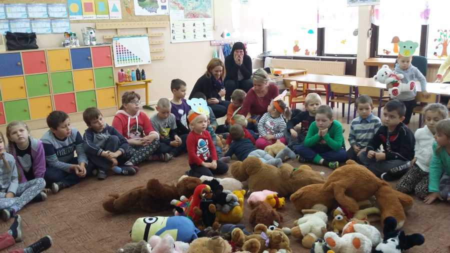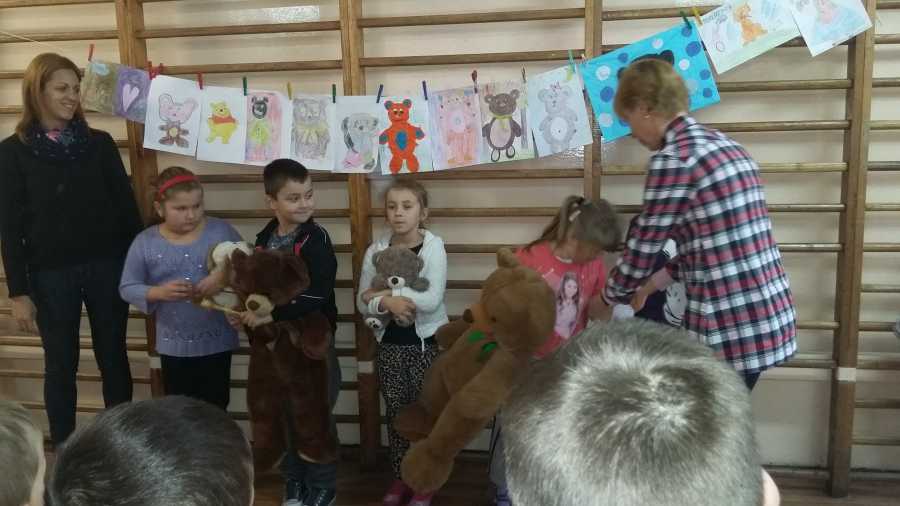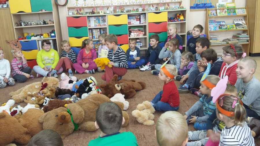 W październiku w naszej szkole odbył się Dzień Pluszowego Misia. Adresatami były przedszkolaki oraz uczniowie z klas O-III, a tematem przewodnim tegorocznego święta był przyjaciel. Głównym celem popularyzacji w naszej szkole tego święta była chęć ucieczki od agresji i przypomnienie najważniejszych wartości jakimi są dzieciństwo, przyjaciel, miłość, ciepło. Z tymi słowami łączy się właśnie Pluszowy Miś-przyjaciel z dzieciństwa, zawsze wierny i oddany. To jemu powierzamy swoje sekrety i to on ma nas uchronić od zła i niebezpieczeństw. Wszyscy uczniowie mile nas zaskoczyli. Nie było chyba w szkole tego dnia osoby, która przyszłaby bez swojego przyjaciela Misia. Maskotki były różne od bardzo malutkich do bardzo, bardzo dużych. Ilość pluszowych przyjaciół w tym roku była imponująca. Na pamiątkę tego święta wszyscy zrobiliśmy zdjęcia swoim przyjaciołom. Cały dzień upłynął w bardzo sympatycznej , ciepłej i rodzinnej atmosferze. Na zakończenie spotkania stwierdziliśmy zgodnie ,że świat bez przyjaciół byłby bardzo ubogi . Z niecierpliwością czekamy na kolejne spotkanie za rok.
