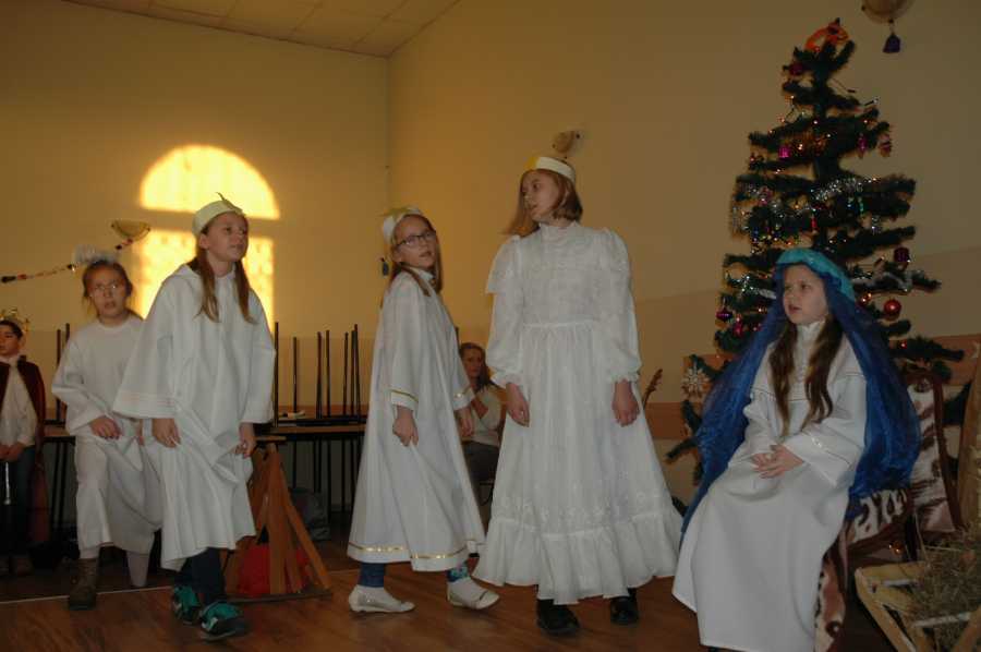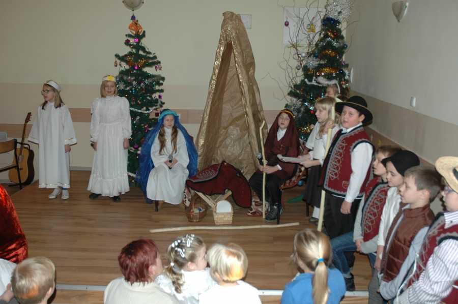 Tymi słowami 20 grudnia 2015 roku uczniowie naszej szkoły przywitali mieszkańców Kowalewa i Jędrzychowic na Sali wiejskiej w Kowalewie gdzie wystawili jasełka wprowadzając wszystkich w świąteczny nastrój.Występ rozpoczęli najmłodsi uczniowie naszej szkoły z punktu przedszkolnego i z zerówki, zostali przygotowani przez panią Elżbietę Kominowską i panią Marię Śladewską. W jasełkach przygotowanych przez panią Renatę Kubiak wzięli udział uczniowie z klasy III i IV oraz przedstawiciele klasy II i