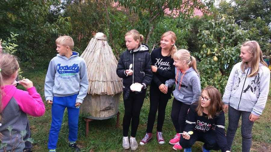 Tym razem uczniowie klas IV-VI udali się do pana pszczelarza. W bardzo serdecznej atmosferze dzieci dowiedziały się o życiu tych pracowitych owadów, ich pracy, znaczeniu w przyrodzie, a także o bardzo odpowiedzialnej pracy pszczelarza. Dzieci zdobyły wiele cennych informacji i ciekawostek z życia pszczół, dowiedziały się czym się żywią, jak spędzają zimę i jak powstaje miód. Obserwowały z bliska rój pszczół i odszukiwały królową. Miały przyjemność obejrzeć przybory, których używa w swojej codziennej pracy, dymkę zwaną podkurzaczem, ramkę, dłuto i odsklepiacz widelcowi. Spotkanie zakończyło się degustacją miodów, które dzieci z wielką przyjemnością smakowały, znając jego odżywcze właściwości i walory smakowe.