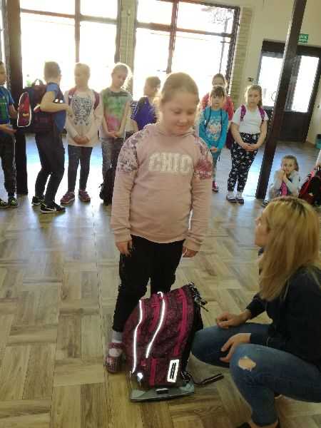 Kończąc pogadankę każdy uczeń miał zważony plecak z czego wynikło ,iż najcięższy plecak
