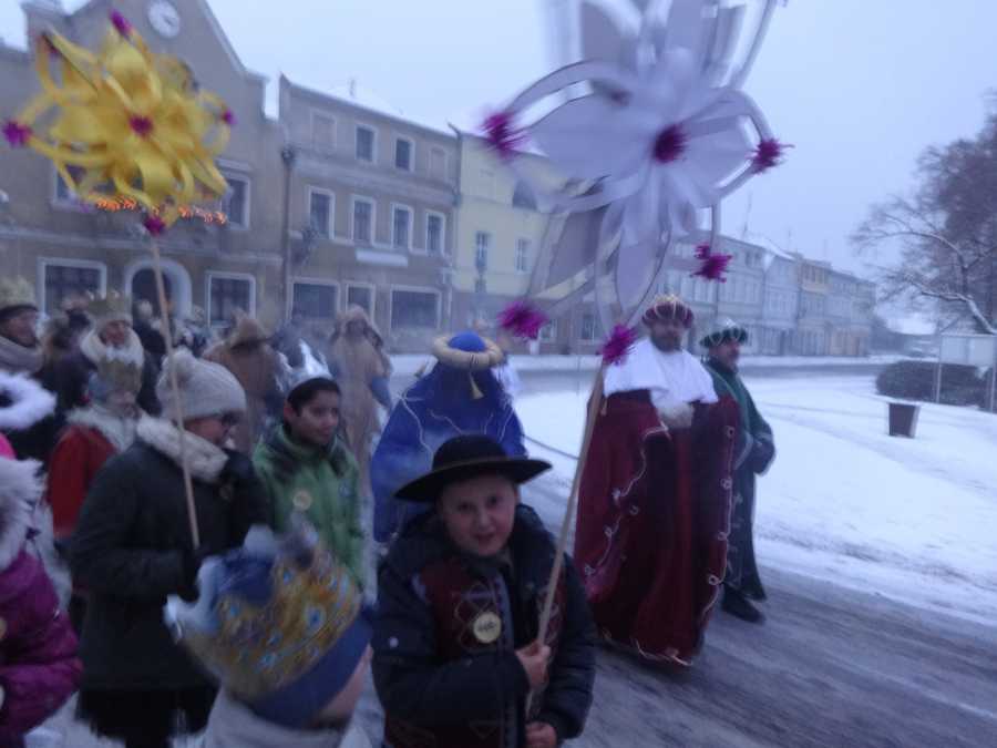 Dnia 6 stycznia uczniowie naszej szkoły wraz z nauczycielami wzięli udział w Orszaku Trzech Króli w Szlichtyngowie zorganizowanym przez księdza dziekana Antoniego Łatkę. Dzieci w kolorowych strojach trzech króli , pasterzy, aniołków, świętego Józefa , Maryji i z pięknymi gwiazdami własnoręcznie wykonanymi przeszły przez ulice Szlichtyngowy. Choć na dworze było śnieżnie i mroźno humory dopisywały wszystkim uczestnikom. Orszak zakończył się w kościele wspólnym kolędowaniem.