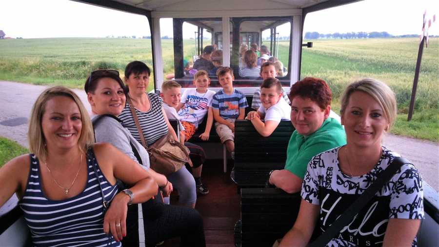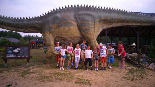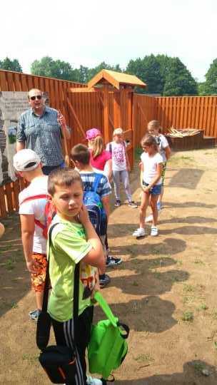 Z Gniezna pojechaliśmy do Biskupina, gdzie czekał na nas pan przewodnik. Aby móc zwiedzić osadę w Biskupinie, musieliśmy odbyć lekcję strzelania z łuku. Nie tylko dzieci, ale również opiekunowie mogli spróbować swoich sił w strzelaniu. Następnie, kierowaliśmy się do osady biskupińskiej, gdzie zwiedziliśmy prasłowiański gród i mogliśmy przekonać się, jak żyli nasi przodkowie oraz obejrzeć ciekawe wystawy archeologiczne regionu historyczno – etnograficznego zwanego Pałukami. Po krótkiej przechadzce znaleźliśmy się pod bramą, która jest dokładnym duplikatem bramy osady odnalezionej podczas wykopalisk. Samo grodzisko również jest rekonstrukcją tego z dawnych czasów. Znajdują się tam rzędy drewnianych domów pokrytych jednym dachem. Na miejscu pan przewodnik oprowadził nas po domostwach naszych przodków i zapoznał z historią osady. Jako uczestnicy wycieczki dowiedzieliśmy się też, jak żyli i czym się zajmowali ludzie zamieszkujący kiedyś to miejsce, jak rozwijało się tam życie. Po drodze mieliśmy okazję podziwiać ludzi, którzy z chęcią prezentowali nam czynności związane z codziennością. Zwiedziliśmy również miejsce, gdzie kręcono sceny do filmu Stara Baśń. Po zjedzeniu obiadu i zabawach na pobliskim placu, pojechaliśmy kolejką wąskotorową do pobliskiej wsi, skąd udaliśmy się w dalsza drogę do Rogowa-do Parku Dinozaurów. Stamtąd wróciliśmy do Jędrzychowic. To była niezwykła podróż do przeszłości. Dziękuję dzieciom i opiekunom za wzorową postawę podczas trwania wycieczki.