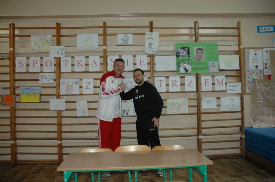 W naszej szkole mieliśmy zaszczyt gościć prawdziwego mistrza. Mierzący prawie 2 metry wzrostu Marcin Prus od pierwszych minut rozmowy skradł serca uczniów naszej szkoły. Uśmiechnięty, serdeczny, a przede wszystkim niezwykle pozytywny były reprezentant Polski w siatkówce mężczyzn. Całe spotkanie miało charakter wywiadu podczas którego dowiedzieliśmy się, że ważne są marzenia, ale również ciężka praca dzięki której osiągniemy sukces. Niecodzienne spotkanie na długo pozostanie w naszej pamięci.