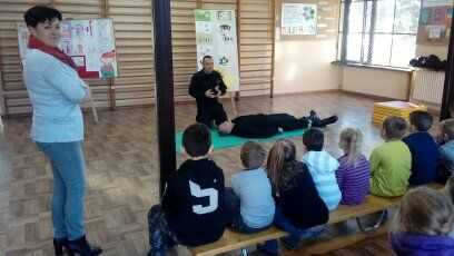 Uczniowie klasy I i II zostali zapoznani z podstawowymi czynnościami w zakresie pomocy przedlekarskiej – oceną sytuacji, zabezpieczenia miejsca wypadku, oceną poszkodowanego, kontrolą czynności życiowych, wezwaniem pomocy, niedopuszczeniu do powstania dalszych powikłań do czasu przybycia lekarza lub karetki pogotowia ratunkowego.