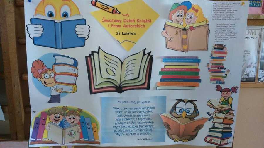 23 kwietnia po raz dwudziesty obchodzono Światowy Dzień Książki i Praw Autorskich. Święto zostało ustanowione w 1996 roku przez UNESCO na wniosek rządu Hiszpanii i Międzynarodowej Unii Wydawców. Ideą tego dnia jest popularyzacja książki i czytelnictwa. Mimo że Światowy Dzień Książki przypada na 23 kwietnia, to w naszej szkole był on obchodzony dwa dni później, tj.25 kwietnia. Jednak przygotowania do niego rozpoczęły się dużo wcześniej. Na lekcjach bibliotecznych uczniowie czytali fragmenty swoich ulubionych książek oraz rozmawiali o korzyściach płynących z czytania.