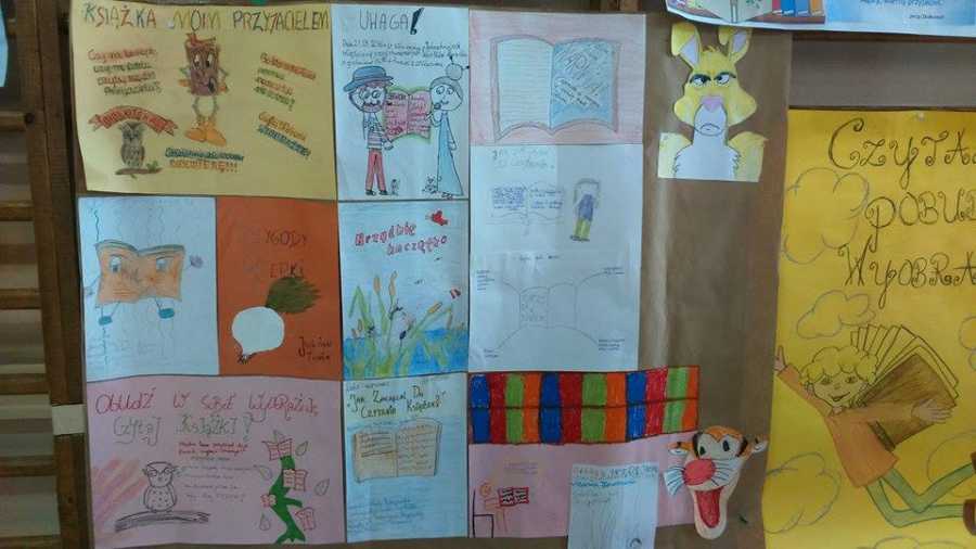 Z tej okazji uczniowie klasy szóstej przygotowali „Smerfne czytanie dla najmłodszych”. Opracowali w grupach interpretację książek, których bohaterami są ulubione przez najmłodszych niebieskie skrzaty. Następnie zaprezentowali je małym słuchaczom, którzy z wielkim zainteresowaniem wsłuchiwali się w tekst przygotowany przez starszych kolegów. Został ogłoszony również konkurs szkolny pt.” Książka-mój przyjaciel”. Wszystkie książkowo-bajkowe prace były piękne, jednak szczególne uznanie zdobyły plakaty wykonane przez: Amadeusza Skrzypczaka (I miejsce), Maję Antoniuk (II miejsce), Tobiasza Skrzypczaka (III miejsce) oraz Jakuba Ciesielskiego (I miejsce), Macieja Jurczaka (II miejsce), Darię Mikołajczyk (III miejsce) i Nikolę Żylewicz (III miejsce).