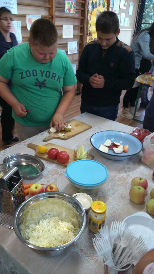 Od 12 do 16 października uczestniczyliśmy w Szkolnym Tygodniu Zdrowia i Zdrowego Odżywiania zorganizowanym przez panią Ewę Szpatowicz w ramach ogólnopolskiej kampanii prozdrowotnej ,,Trzymaj formę”. W tym czasie uczniowie mogli poszerzyć swoją wiedzę na temat zdrowego odżywiania, aktywności fizycznej oraz profilaktyki prozdrowotnej. Uczniowie mogli wykazać się również wiedzą na temat spędzania wolnego czasu, wziąć udział w konkursach plastycznych promujących zdrowe odżywianie , układać krzyżówki, robić plakaty, piramidy zdrowia, opracowywać jadłospisy, przygotowywać prezentacje i filmiki reklamowe. Ogromne podziękowania dla rodziców, którzy czynnie włączyli się w tę akcję i pomogli w przygotowaniu potraw w trzecim dniu kampanii. Tydzień zdrowego żywienia cieszył się ogromnym zainteresowaniem młodzieży. Uczniowie chętnie brali udział we wszystkich zaproponowanych akcjach. Mamy nadzieję, że Tydzień Zdrowego Żywienia zachęcił uczniów do większej aktywności fizycznej oraz wybierania zdrowych produktów, spożywania owoców oraz warzyw.