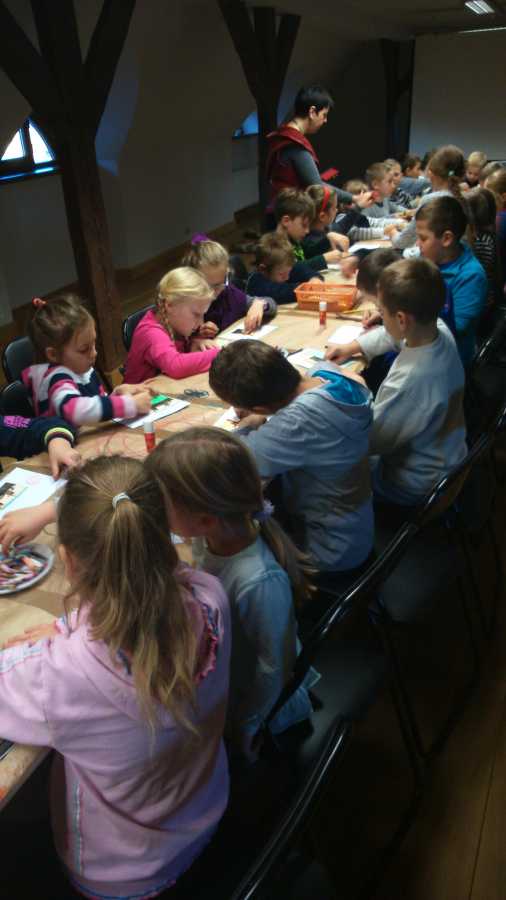 Uczniowie naszej szkoły niedawno odwiedzili Muzeum Ziemi Wschowskiej. Dzieci uczestniczyły w lekcji muzealnej, która rozpoczęła się od krótkiej prezentacji przedstawiającej historię chleba, jego pochodzenie, tradycje z nim związane oraz proces produkcji pieczywa. Po filmie nastąpiła prelekcja właściciela muzeum, który mówił przede wszystkim o ponownym przywróceniu szacunku do chleba. Dodatkową atrakcją dla zwiedzających były warsztaty, na których uczniowie samodzielnie tworzyli widokówki. Uzyskany efekt wprawił w zachwyt instruktora, nauczycieli, a co więcej – również samych uczniów. Czas spędzony w Muzeum pozostawił w sercach dzieci niezapomniane wrażenia.