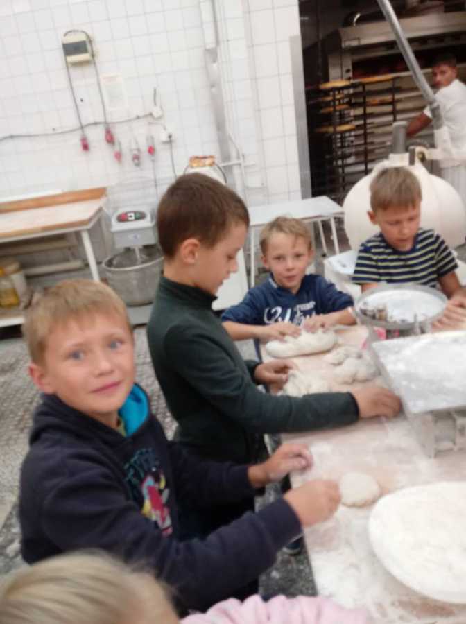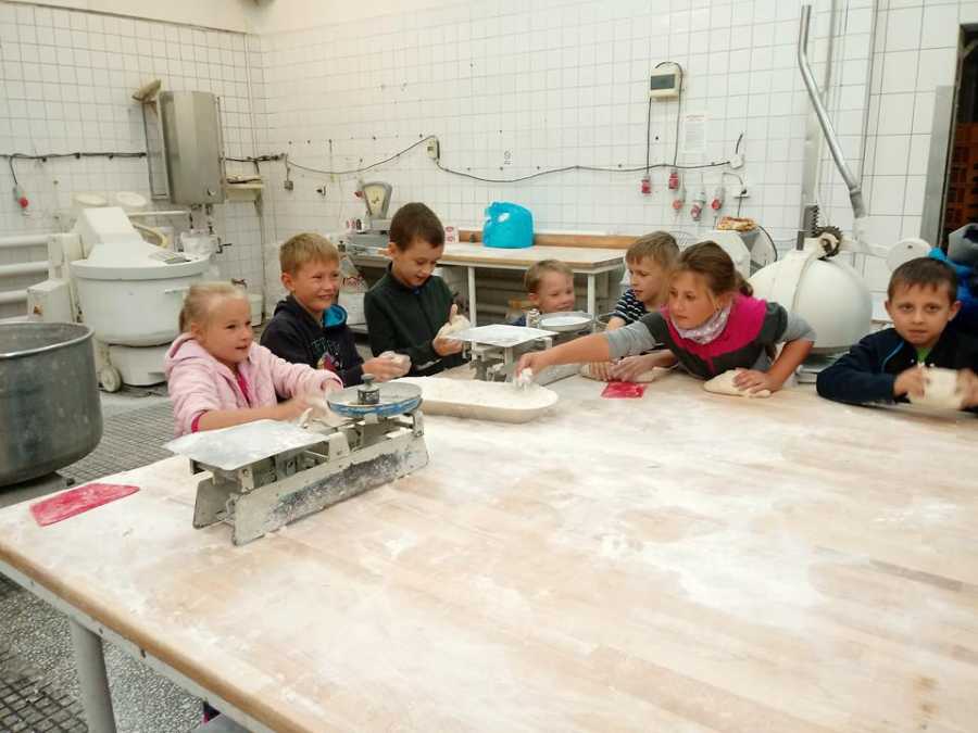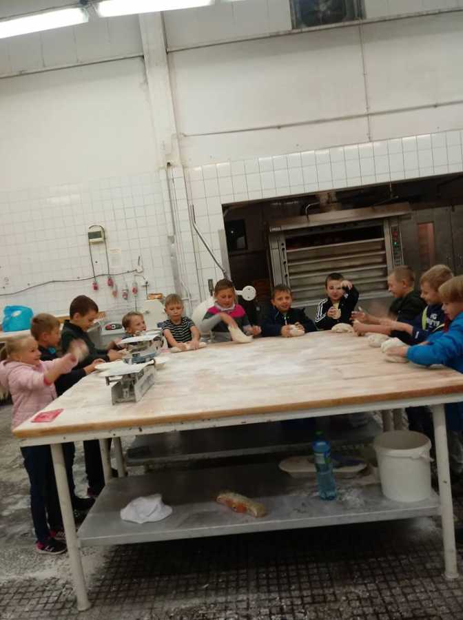 Uczniowie z klasy trzeciej w ramach zajęć edukacyjnych złożyli wizytę w piekarni aby