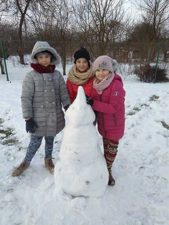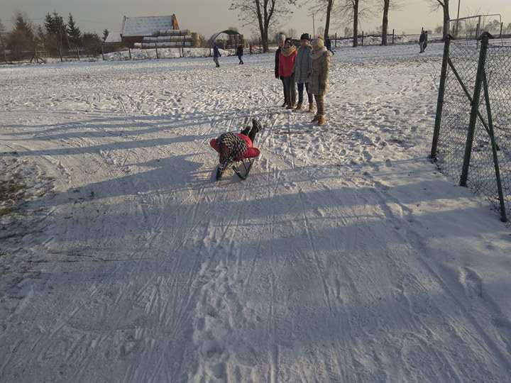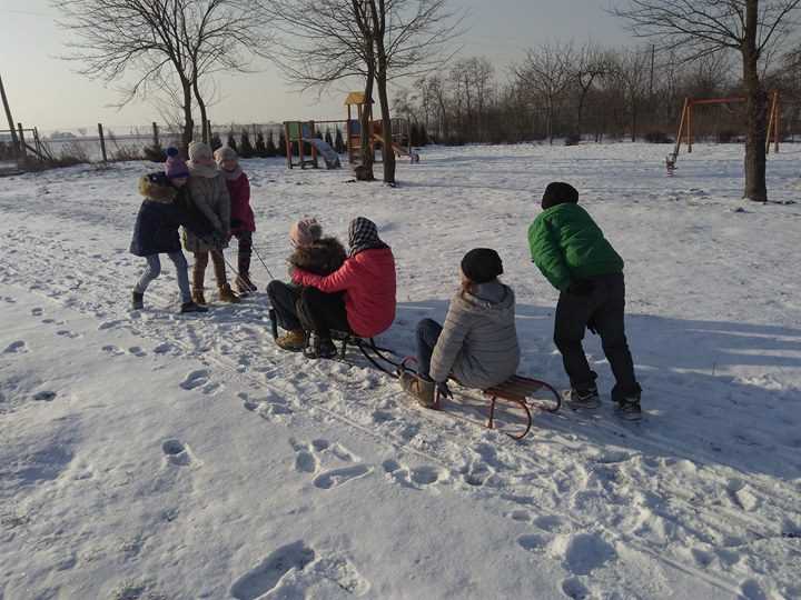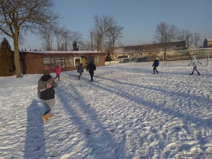 Za oknem zimowa aura i śnieg, który dzieci przecież uwielbiają. To świetna okazja, aby zażyć ruchu na świeżym powietrzu, przy okazji świetnie się bawiąc. Uczniowie naszej szkoły na białym puchu grali między innymi w piłkę nożną, konkurowali w nowej dyscyplinie sportu sanko-speedway :), w ślizgu na sankach. Nie obyła się bez tradycyjnych zabaw czyli śniegowej bitwy kulkami oraz lepienie bałwana.
